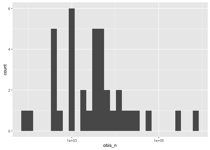 ## # worms_id <int>, redlist <lgl>, status <chr>, records <int>,